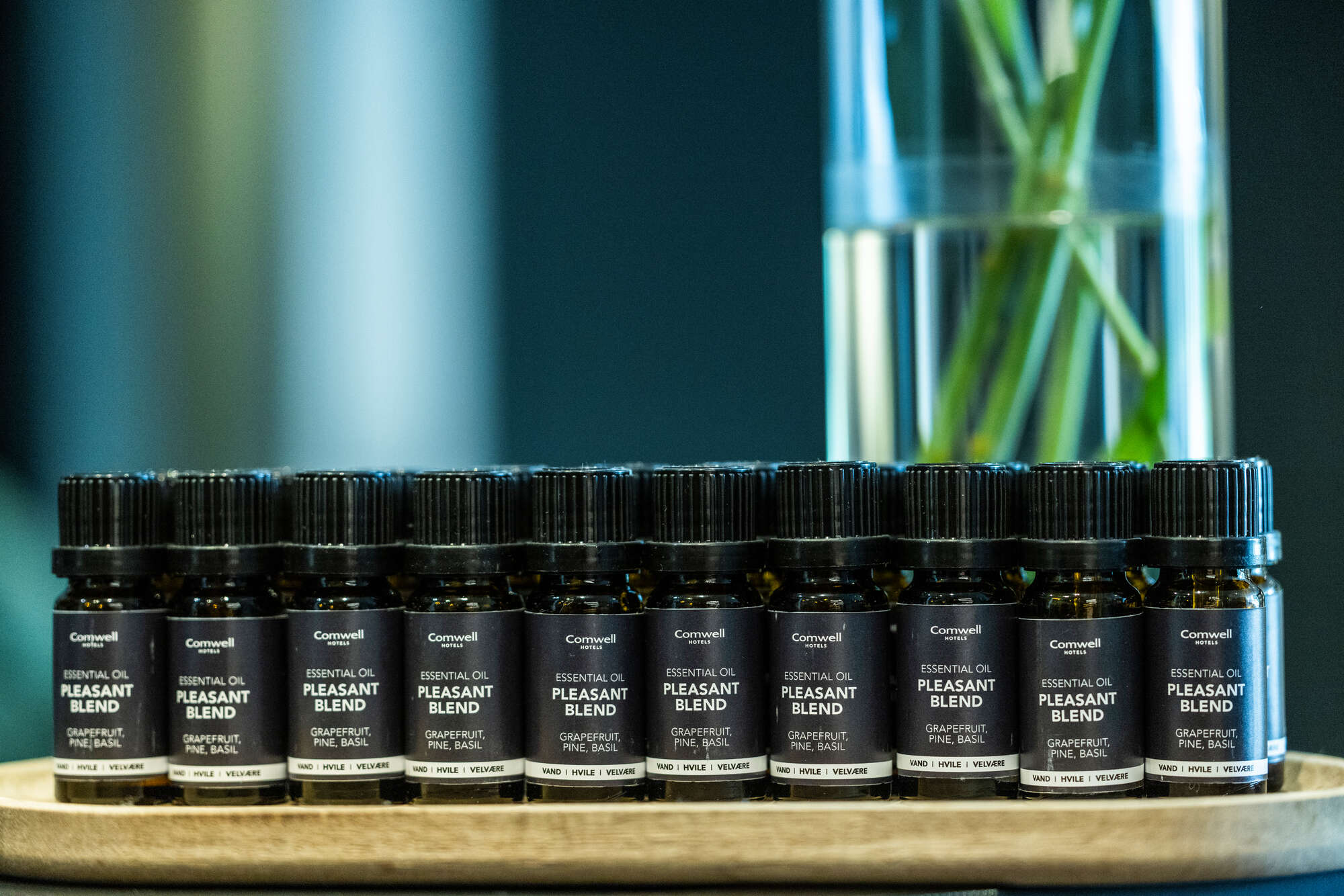 Our signature fragrance is an organic oil specially designed for Comwell Spa. The scent is called "Pleasant Blend" and combines the freshness of grapefruit and basil with the depth and calm of strong pine and vetiver. There are also warm and soothing aromas of frankincense that complete the harmonious combination in Pleasant Blend.
