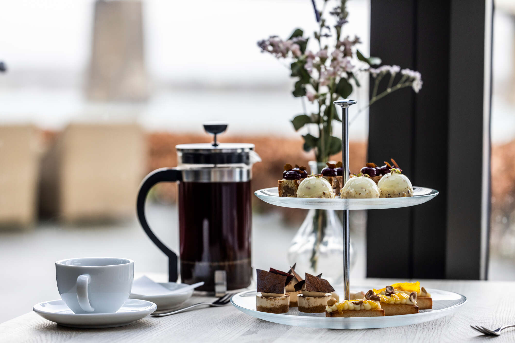 Vi inviterer dig til en udsøgt oplevelse fyldt med lækre kager og friskbrygget kaffe og te, alt sammen serveret i vores elegante omgivelser.